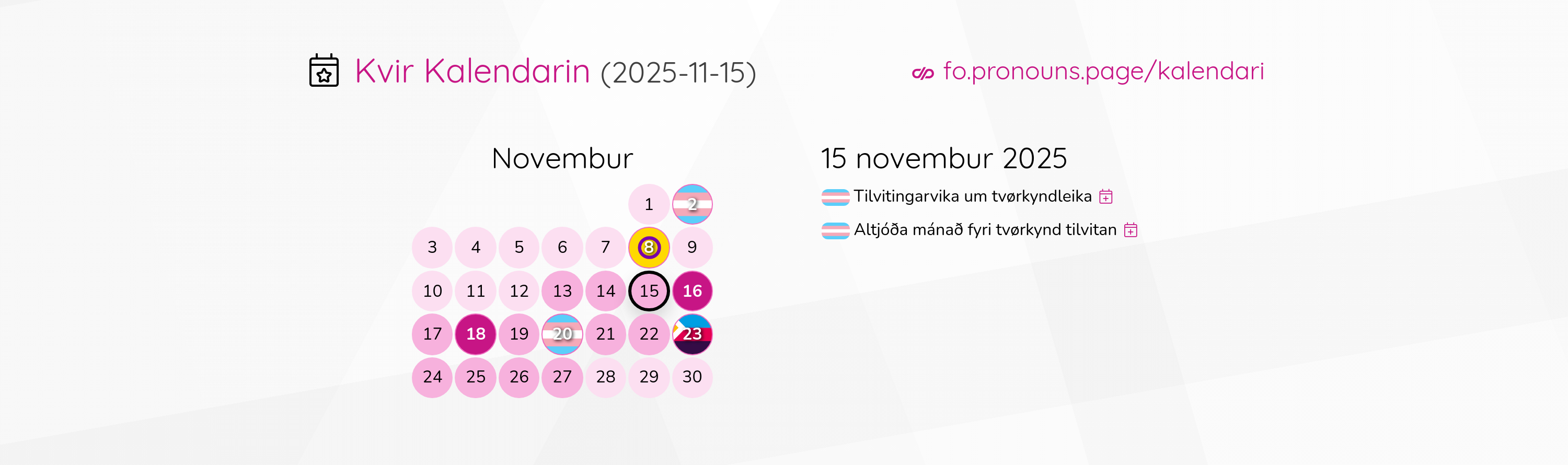 Alternativ tekstur: Eitt fýrkantað flagg við fimm vatnrættum strípum í javnbreidd: blátt, ljósareytt, hvítt, ljósareytt, blátt. Altjóða mánað fyri tvørkynd tilvitan