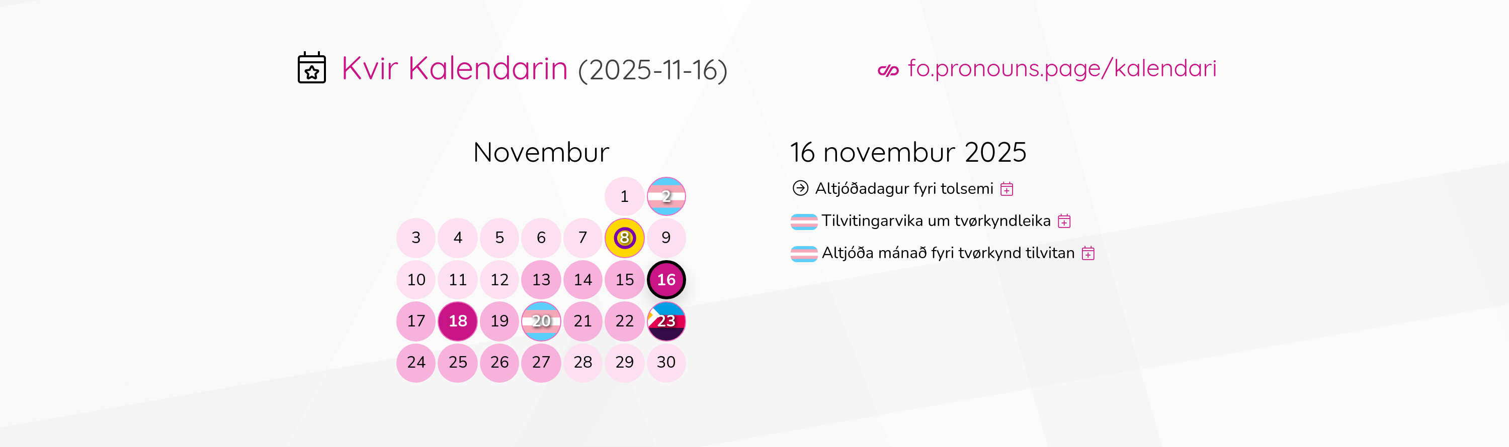 Alternativ tekstur: Eitt fýrkantað flagg við fimm vatnrættum strípum í javnbreidd: blátt, ljósareytt, hvítt, ljósareytt, blátt. Altjóða mánað fyri tvørkynd tilvitan
